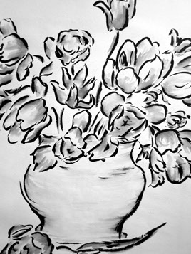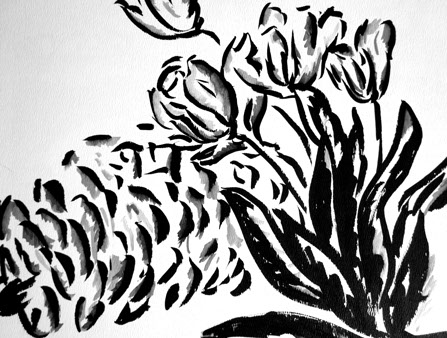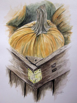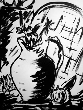 various mediums: sumi ink, watercolors, charcoal, pencil, colored pencil, acrylic, pen and ink
